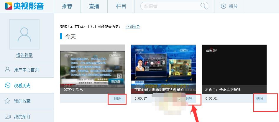 2、打开央视影音界面右上角的“观看历史”,可以看到刚才在这里播放的视频记录。