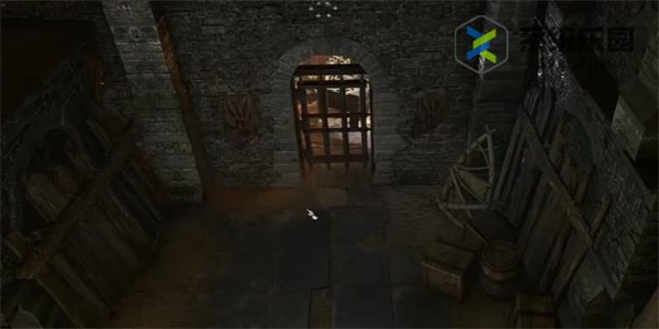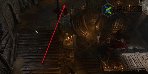 2、接着需要进入下图的房间当中按照标记的路线走到楼梯上,可以看到一扇大门
