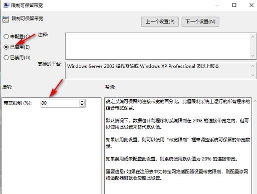 4、输入后,选择“已启用”,将宽带设置为0,单击“应用-确定”。