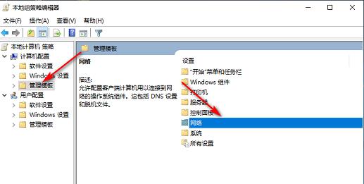 2、选择管理模板,单击“网络”。