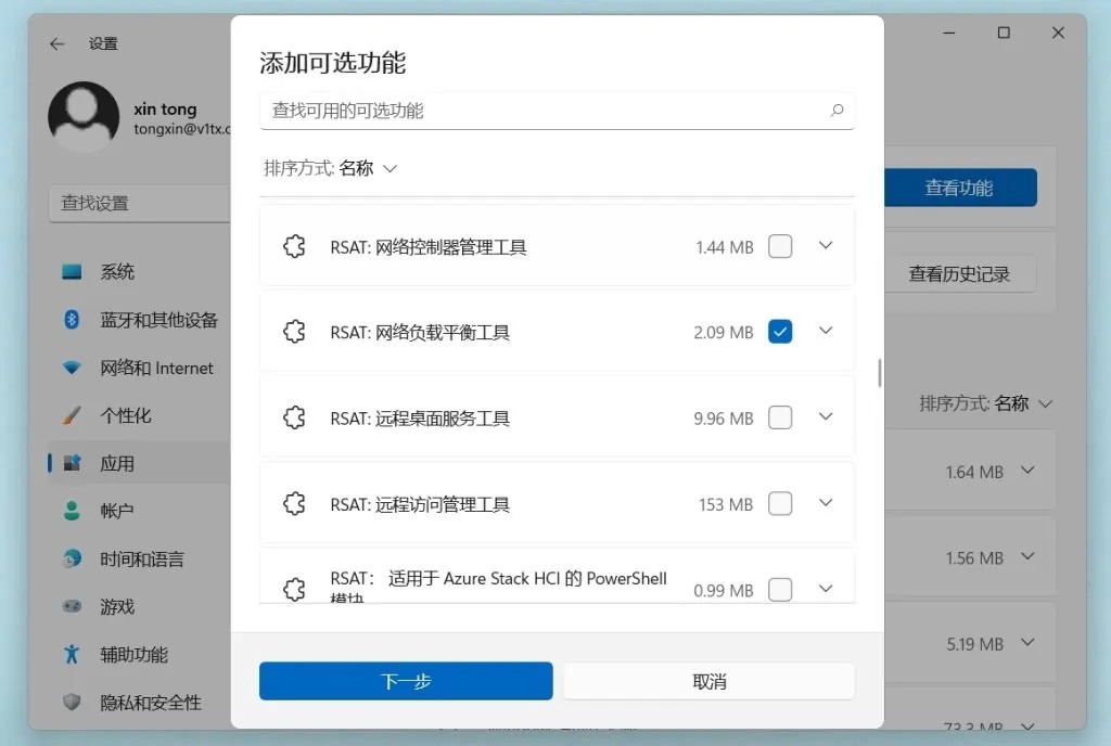 3、你会看到目前可以直接安装的Windows可选功能,找到自己需要使用的功能,然后点击下一步即可安装该可选功能;