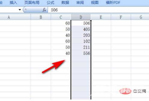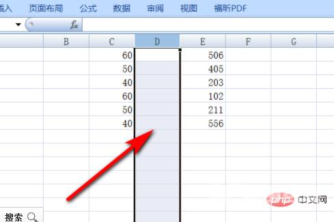 如果想要在C列和D列中添加一列,我们将鼠标移到D列,将这一列选中。