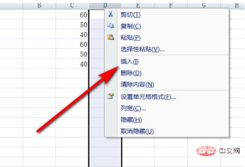 表格增加一列的方法:首先打开Excel表格,并在Excel表格里面输入两列数据;然后将鼠标移到D列,将这一列选中;最后点击鼠标右键,选择插入选项即可。