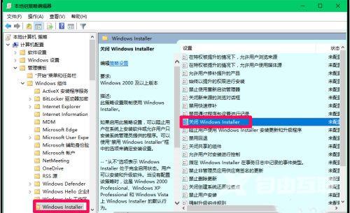 3、然后双击打开右侧中的"关闭windows Installer"。