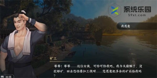 1、玩家需要前往任务触发地点,到达后和NPC对话,他会询问我们是否愿意赠送矿石