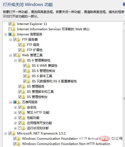 3.等待加载,选择Internet信息服务,勾选如下选项