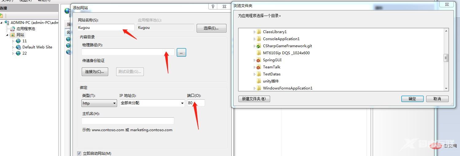 在 网站 上右击选择 添加网站,输入自定义网站名(可以是项目名,比较好找),选择物理路径(项目发布文件的路径),接下来设置端口号,一定要设置且不能重复。80端口默认的不能使用,随便输入一个没有被用过的即可。主机名不要填,否则别人访问不了。点击确定就好了。