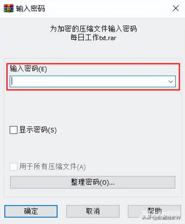 步骤6:设置好后,再点击刚刚压缩并加密的文件夹,会出现要你输入密码的窗口,这代表文件夹密码已经设置成功。