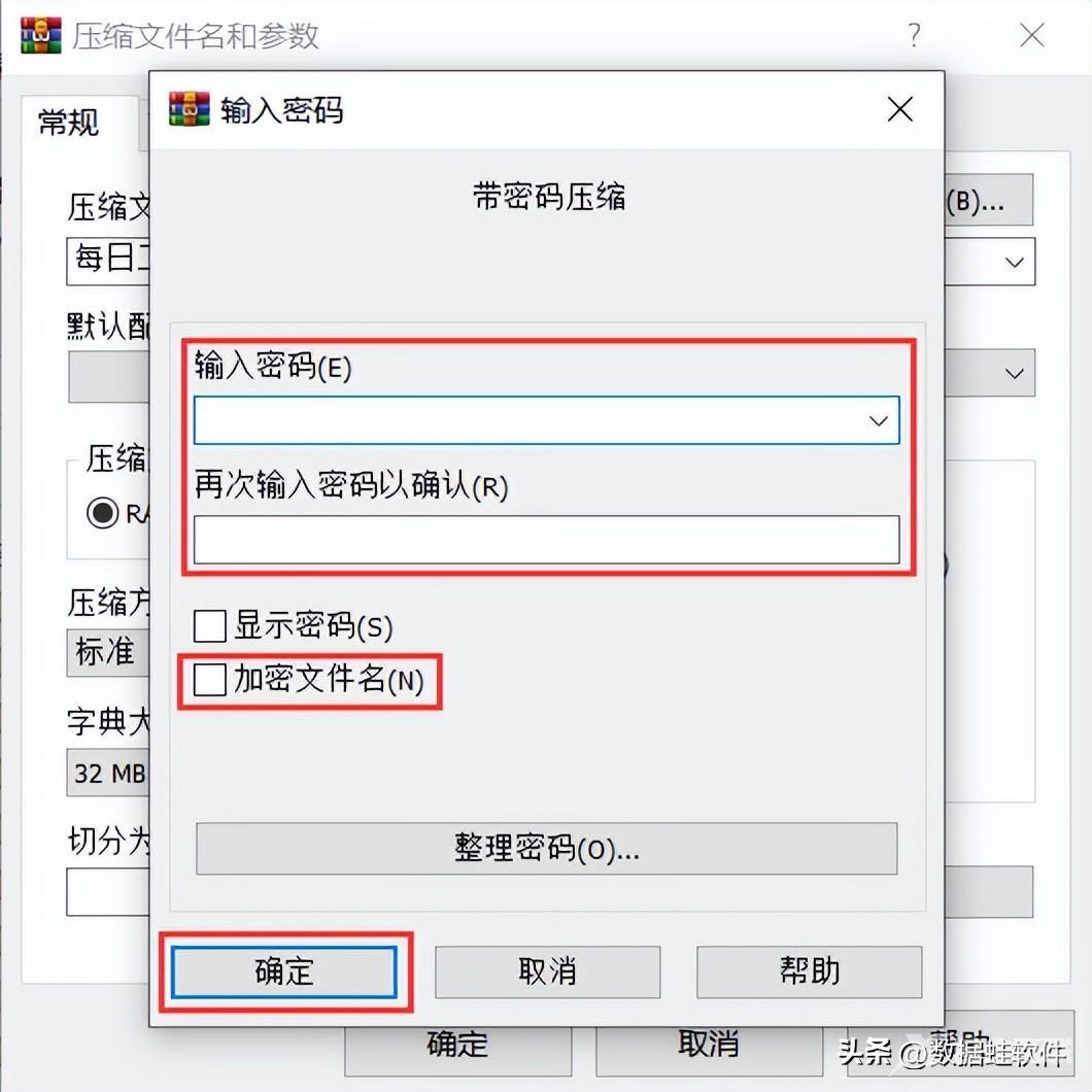 步骤5:之后将密码输入和再次输入密码确认即可。如果想要加密文件名称,就在输入密码的下方选择【加密文件名】;