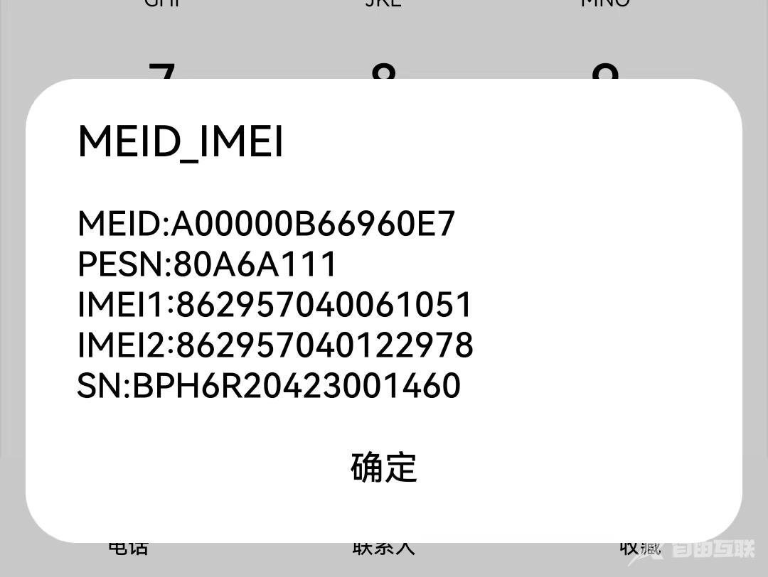 我们可以点击打开通话界面,然后输入一串代码*#06#,输入完成以后,大家会看到下方会有个sn码,也就是手机的序列号,其他的一些数字大家可以不用管,我们首先要找到 sn码序列号,然后点击 sn码,把它复制一下。