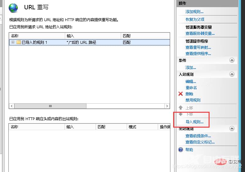 点击“URL重写”,点击右侧的“导入规则”,选择要导入的规则文件,点击应用即可