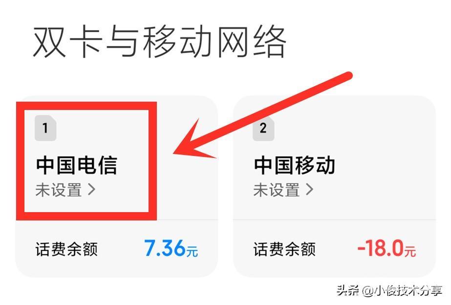 接着就可以看到我们手机上安装的手机卡,比如说我手机安装了2张卡,那么依次点击这个手机卡!