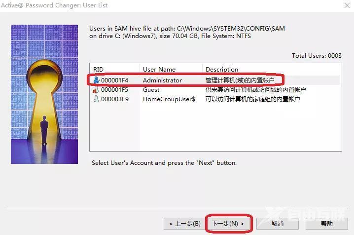 里头有几个破解密码的工具,文件名为PasswordChanger的就是: