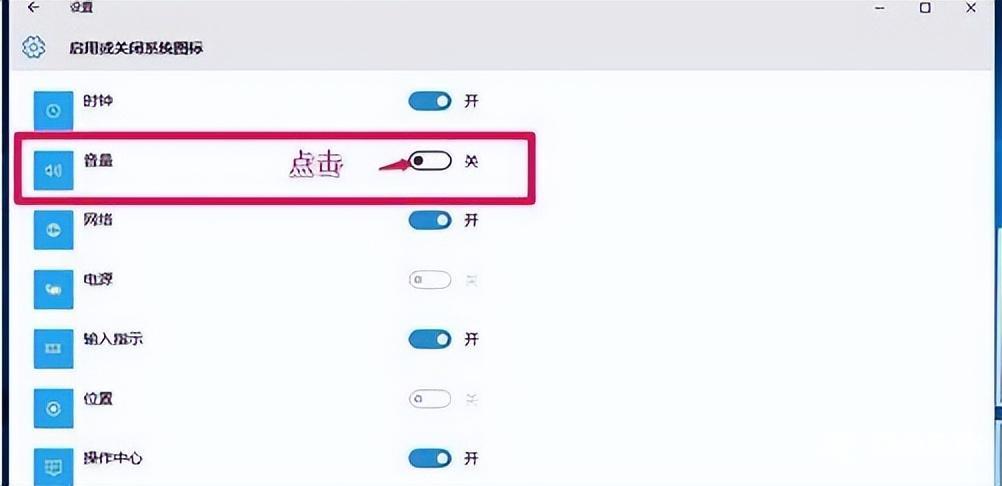 2、 可以看到“音量”图标是处于“关”的选项位置,点击开启就可以