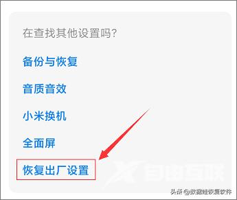 也可以打开【设置】后直接在搜索框内输入“恢复出厂设置”,这样也可以打开这个功能。