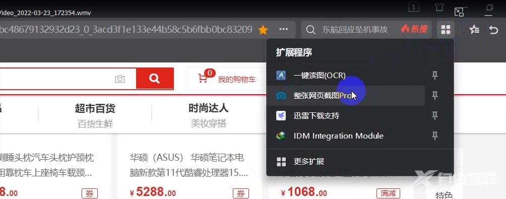 在要截屏的界面上,点击扩展程序:整张网页截图PRO。