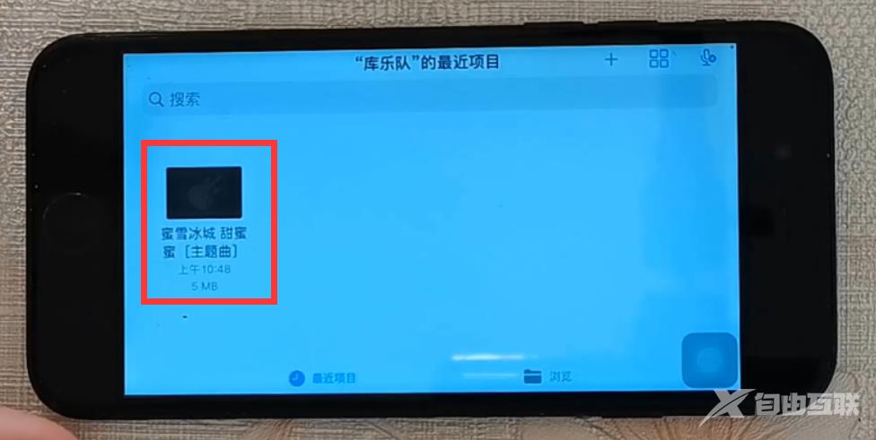 在这个界面,我们可以看到一个“库乐队”的按钮(如果没看到,可以左右滑动这排按钮列表,就能找到,前提是你的手机安装了库乐队这个app)。我们点击这个“库乐队”,然后就会进入库乐队的个界面,我们横屏显示(如下图)。