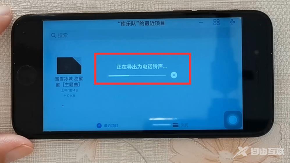 在这个界面,我们点击右上角的“导出”按钮,这个时候,手机就开始把这个歌曲导出为电话铃声(如下图)。