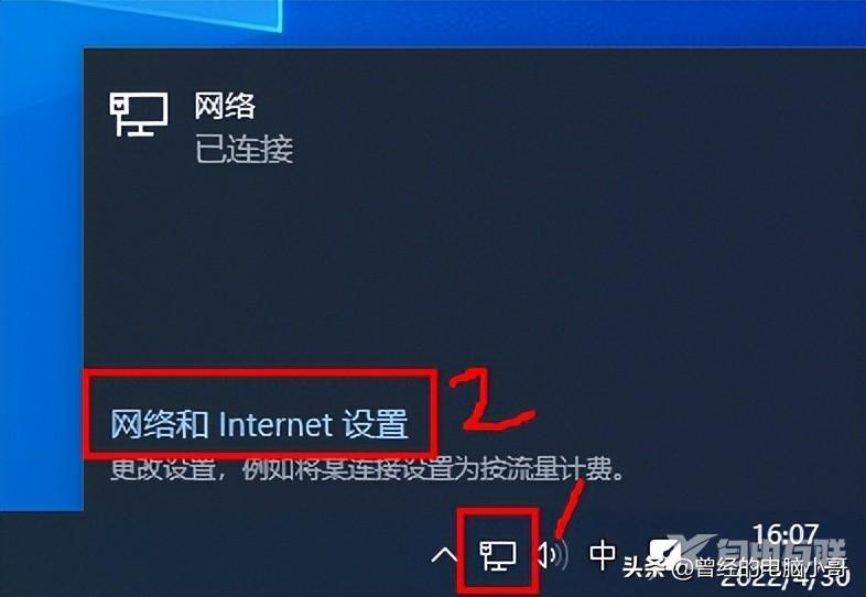 方法二:桌面右下角找到网络小电脑图标→在小电脑图标上点鼠标左键→点上边的网络和internet设置→以太网→更改适配器设置→以太网→右键鼠标点属性→双击IPv4或者IPv6即可查询IP地址。