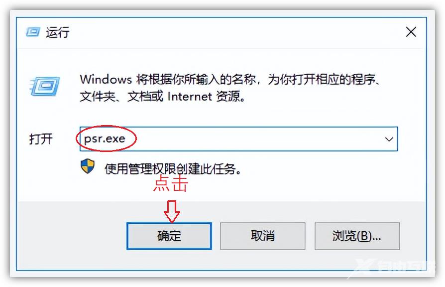 首先使用快捷键【Win+R】调出运行窗口,在搜索框内输入“”psr.exe“”,输入完成后点击下方的【确定】按钮。