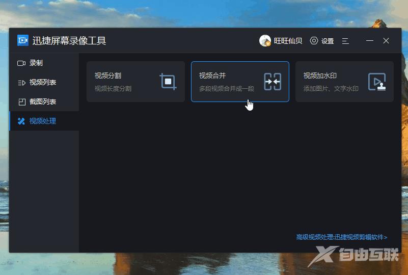 录制多条视频还可以合成一个视频,批量导入视频,长按视频的缩略图支持调整顺序,最后点击【合并视频】,等待处理完成。