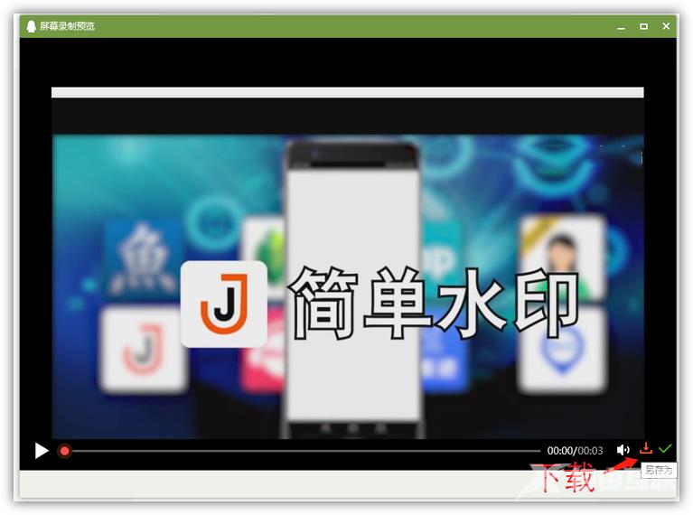 录制成功后,直接点击右下角的【结束录制】,录制好的视频就会自动播放预览,想要保存视频。就点击右下角的下载图标,将视频保存到桌面。