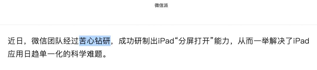 微信官方还用了“苦心钻研”、“科技难题”等字样
