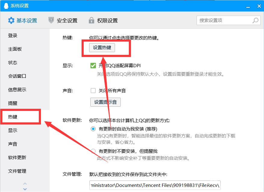 手机上离不开微信,电脑上肯定也离不开QQ了,QQ是我们电脑上使用最多的社交软件,几乎每个人的电脑上都有它的身影。QQ也带有截图功能,我的QQ截图快捷键是Shift+Z键,只要同时按下它们,就可以截取全屏或局部截屏。当然,这个快捷键我们可以自定义。打开QQ的设置,点击左侧导航的“热键”菜单(如下图)。