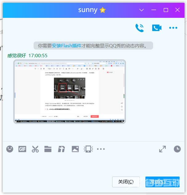 有时,我们不想截取全屏,只想截取某个活动窗口,比方说,我想截取QQ聊天窗口,这时,我们先用鼠标点击QQ聊天窗口,让它变成当前活动窗口,然后同时按下键盘上的 Alt 和 Print Screen键,就可以截取下来保存到剪切板里。然后,按下Ctrl+v键,就可以粘贴到文章编辑器里(如下图)。