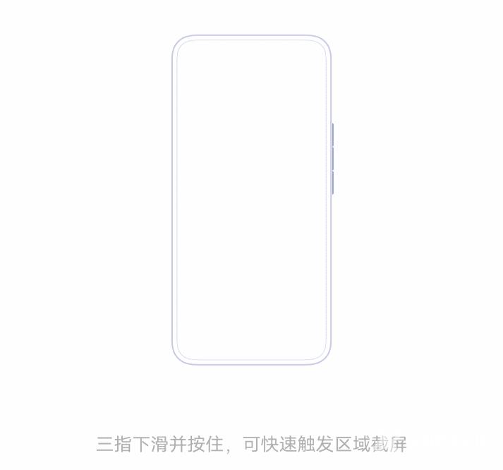 有时候我们并不需要截取整个屏幕,只需要截图其中一部分,就可以用到区域截屏。同样是用三个手指在屏幕中间下滑,这时候注意,滑下去的时候要在屏幕上停留一会,就可以启动这个功能。