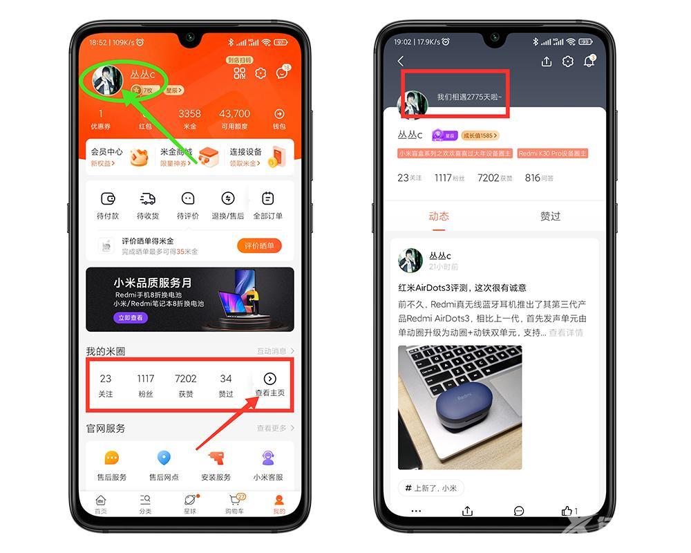 小米商城路径: 打开商城->我的->我的米圈->查看主页