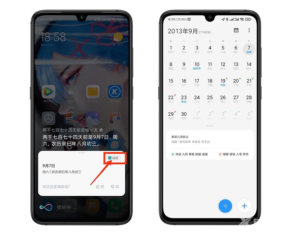 唤醒手机小爱同学,问“2774天之前是哪一天?”小爱会告诉你那是哪一天,不过这里看不到年份,需要通过点击右上角“日历”,跳转之后即可看到具体注册时间。