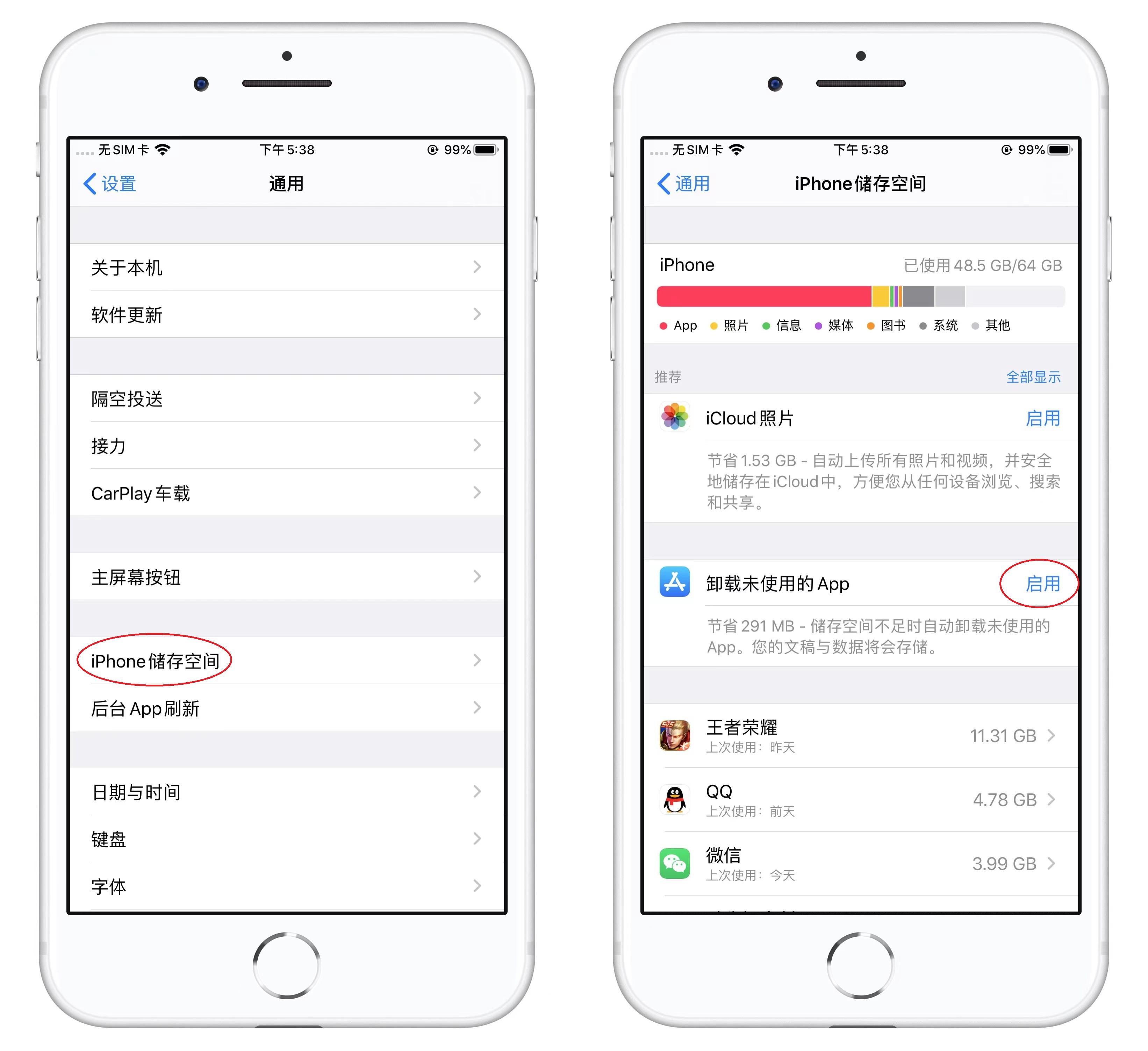 首先我们打开苹果手机的设置,找到【通用】-【iPhone储存空间】,进入后点击【启用】卸载未使用的App,当你的储存空间不足时,就会腾出部分空间。