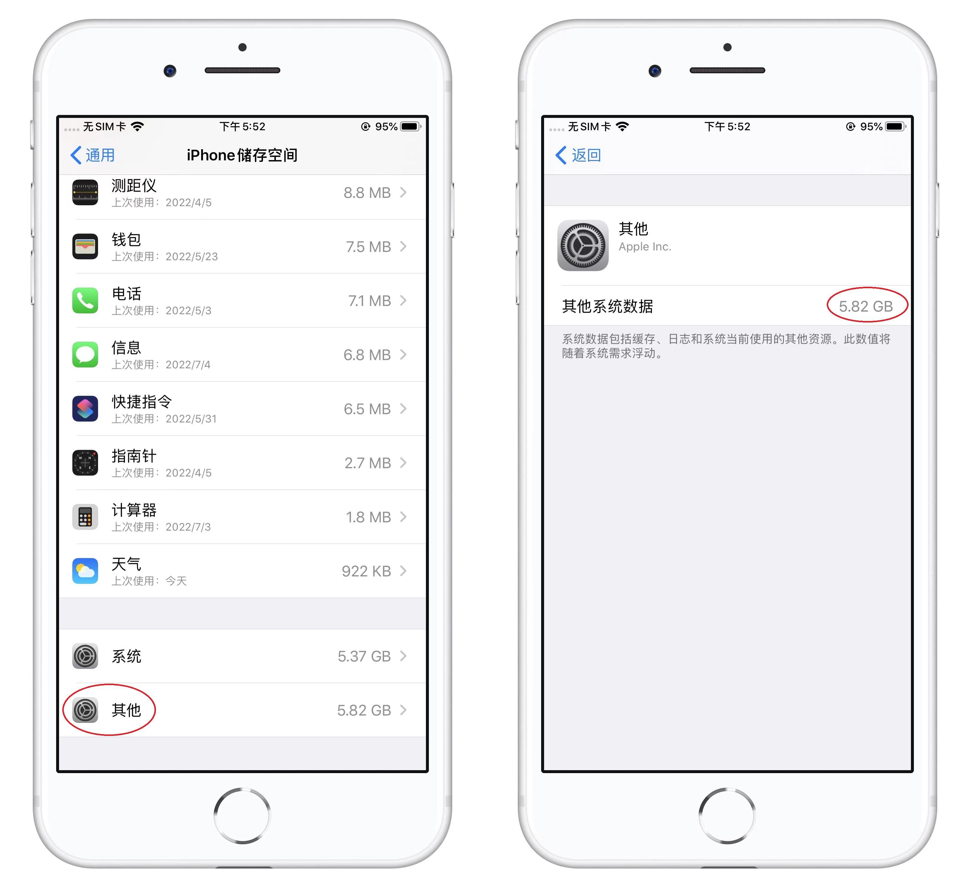 接下来滑动到iPhone储存空间底部,可以看到【系统】和【其他】这两项,占用的存储非常大,系统文件是不能删的,那么这个“其他”该怎么清理呢?