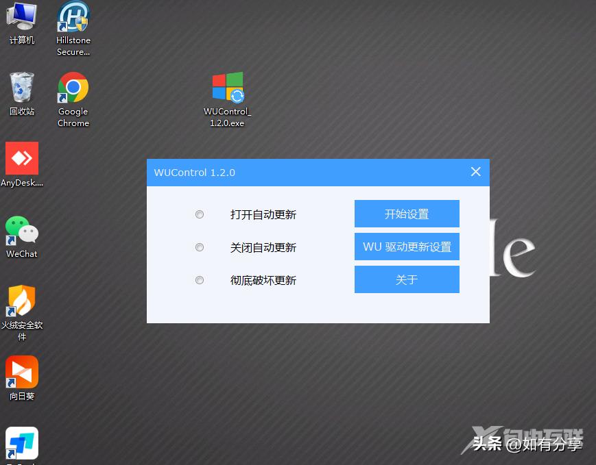 WUControl 功能:打开自动更新;关闭自动更新;彻底破坏更新;可调用命令行