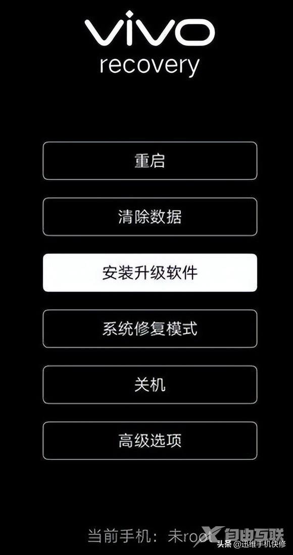 5.再次进入“recovery”模式,选择“安装升级软件”,界面会跳转,出现选择从“内置存储”还是“外置SD卡”升级。