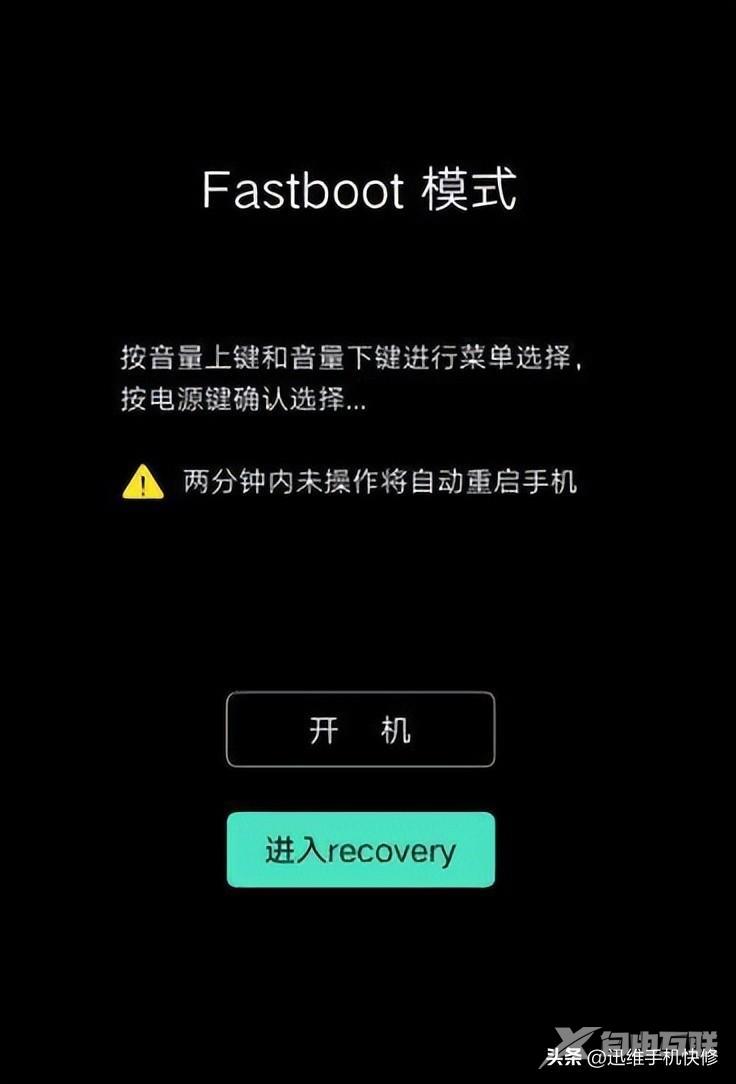 2.选择“进入recovery”。这里要提醒大家的是,recovery模式下屏幕是不可以操作的,但可以通过按音量的上下键移动光标,按电源键去确定选项。
