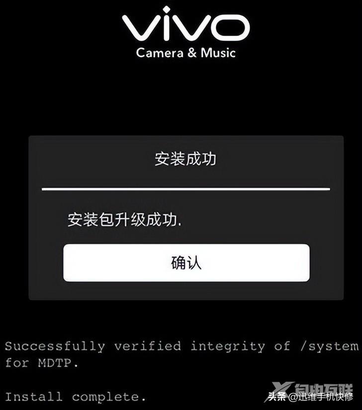 7.进度条读完后会提示安装成功,点击“确定”,手机跳转到“recovery”界面,最后重启手机就可以了。
