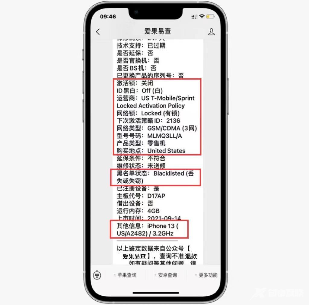 (图1)网友说她买了一台红色黑解iPhone13,该机的外观成色不错,而且价格还是很合理,仅需要4000元,但到货之后网友通过IMEI查询整机报告的时候发现,这台iPhone13该机的黑名单状态居然是“失窃”。