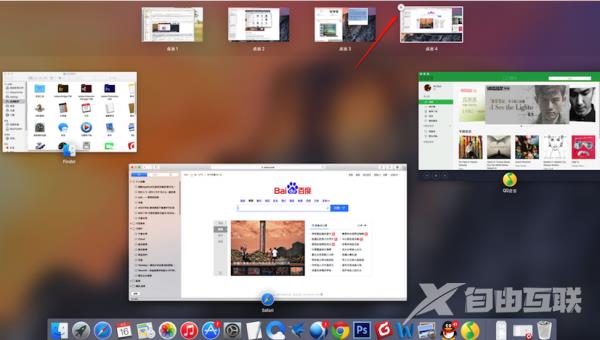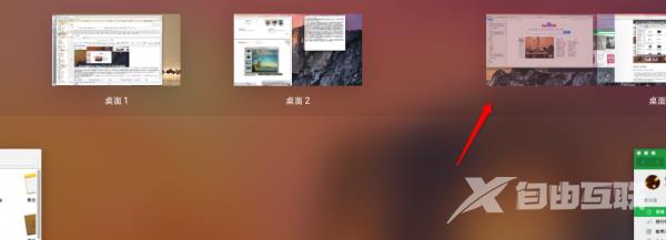 在Mission Control中可以使用四指左右扫动或者快捷键【Control】加左右箭头按键来切换当前选中的界面。选中之后,四指向下,退出Mission Control回到选中的界面。 也可以直接用鼠标单击上方缩略图快速来到你想要的界面。