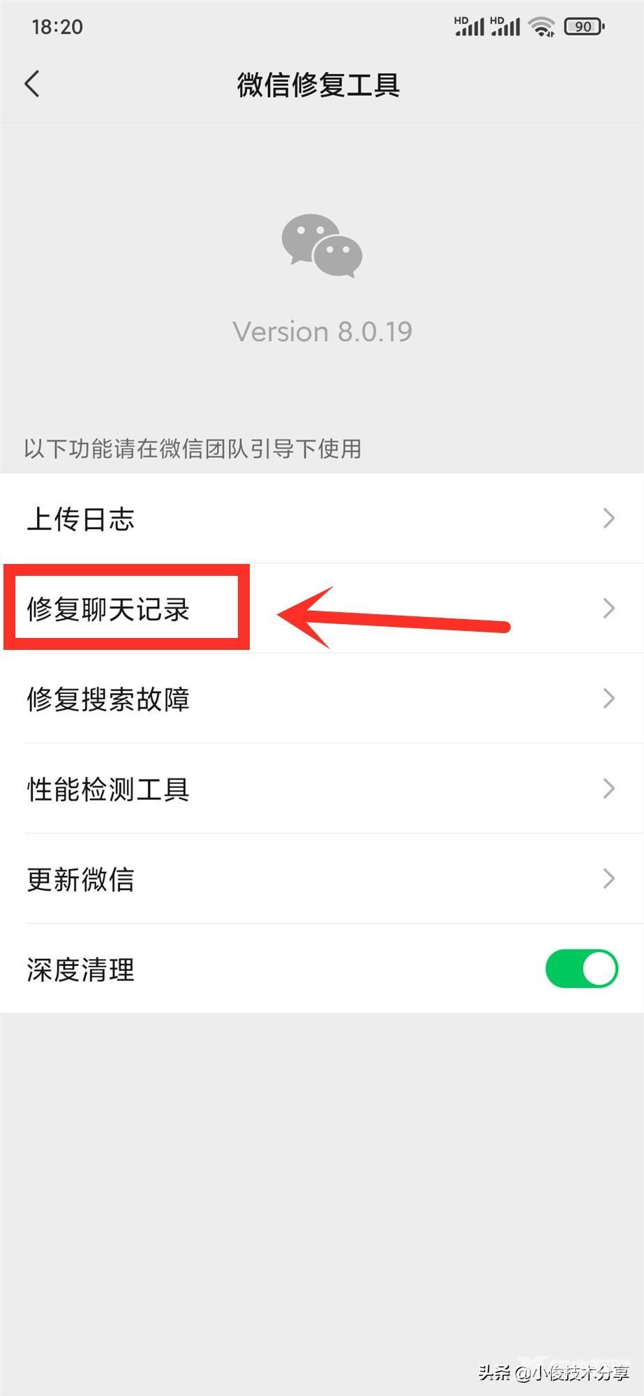 接着点击右上方的小扳手打开,打开之后直接选择【修复聊天记录】
