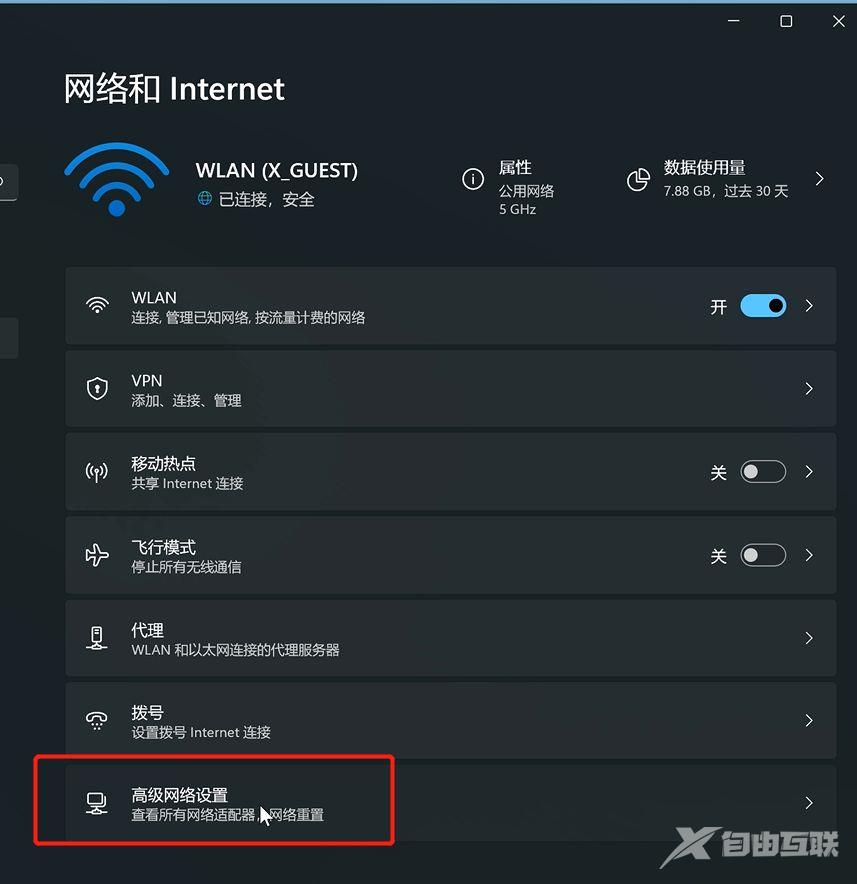 在上面的指示中打开的“网络和Internet设置”中,点击高级网络设置