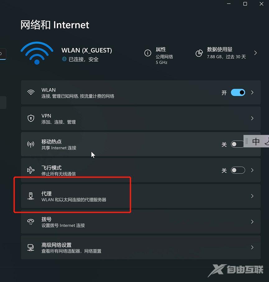 这种情况一般会在上次关机前使用网络代理软件有关。关机前由于没有正确关闭软件,导致代理设置没有还原,无法联网。解决很容易,代理开关重新打开关闭一下就好了。具体操作如下:右击WiFi图标,点击“网络和Internet设置”