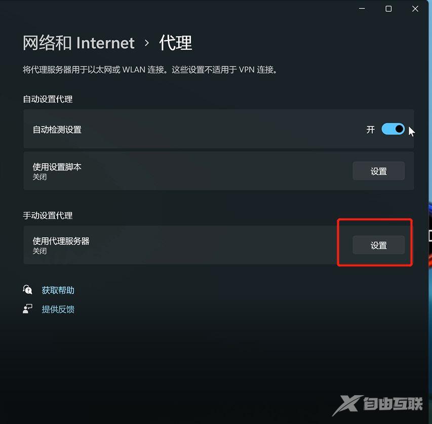 点击“使用代理服务器”旁边的设置