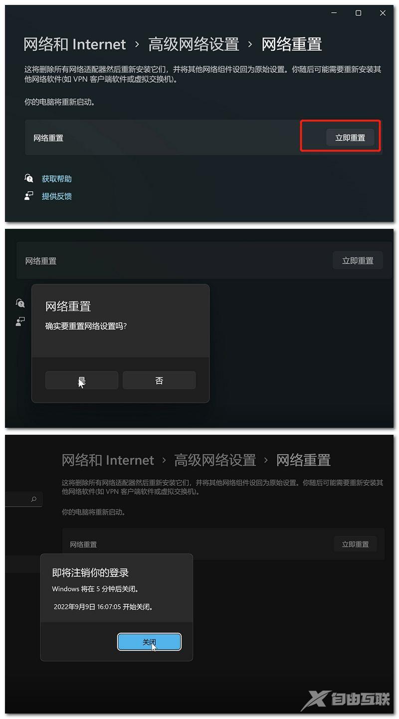 然后点击“网络重置”