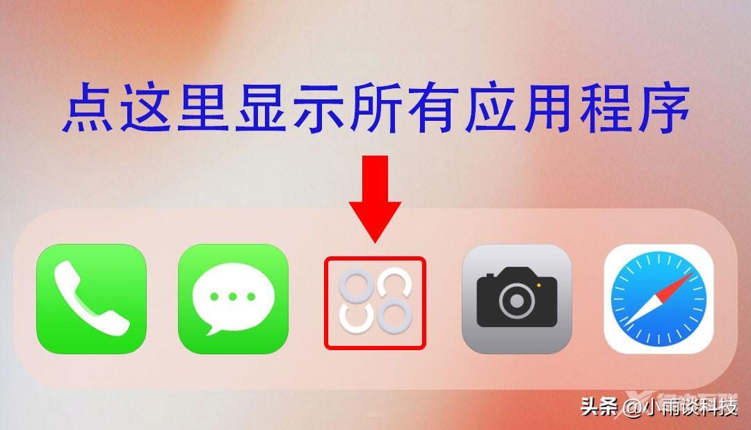 如果是不想选择性地添加应用程序的话,也可以点击桌面底部最中间的那个图标显示所有手机的应用程序。