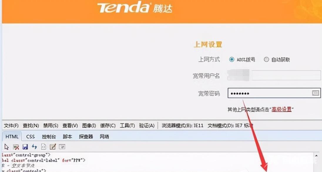 7、还有一种获取宽带密码的方法,就是在进入路由器管理界面后,利用“开发者工具”来查看HTML代码中的“宽带密码”。如图。