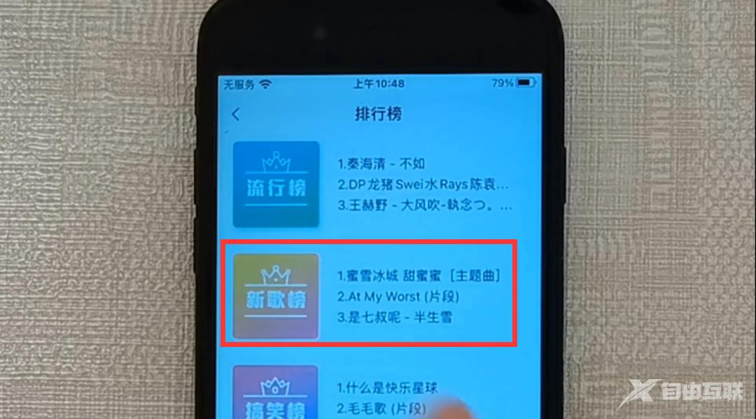 在里面找到自己喜欢的歌曲,我这里作为演示,就随便找一首吧,点击“排行榜”。