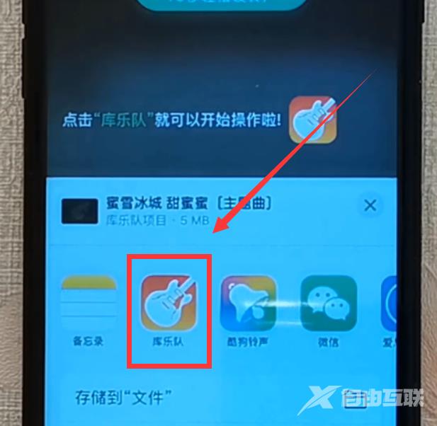 在这个界面,我们可以看到一个“库乐队”的按钮(如果没看到,可以左右滑动这排按钮列表,就能找到,前提是你的手机安装了库乐队这个app)。我们点击这个“库乐队”,然后就会进入库乐队的个界面,我们横屏显示(如下图)。
