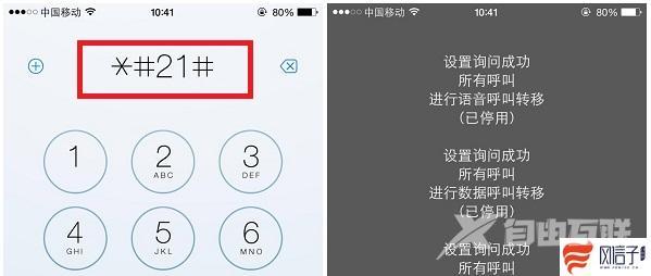 1、可以先查询,在拨号盘输入:*#21#,就可以显示出当前的呼叫转移的状态。也可以不需要这个操作。